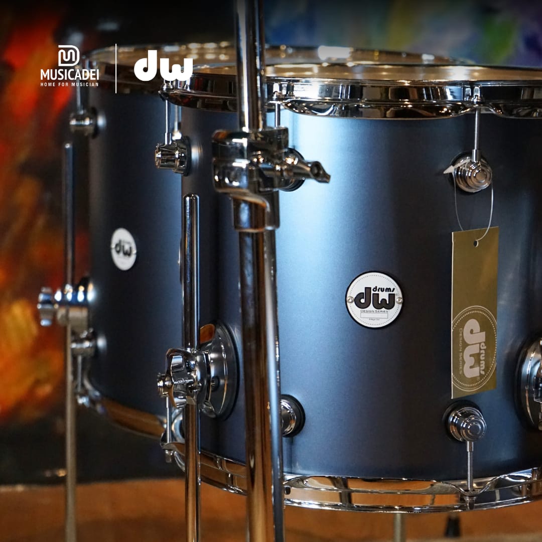 Spesifikasi DW Design 6 Piece Drum Set, Blue SlateDW Design 6 Piece Drum Set, Blue SlateYears of drum set making experience and expertise went into developing this brand new line of drums. Each drum is finished in one of three durable lacquer colors and outfitted with a newly-designed low mass mini turret lug. Snares include an artist-approved MAG throw-off and all drums feature True Pitch Tuning and DW heads by Remo. Add to that a selection of DW’s most popular F.A.S.T. sizes and our STM mounting system.Â
